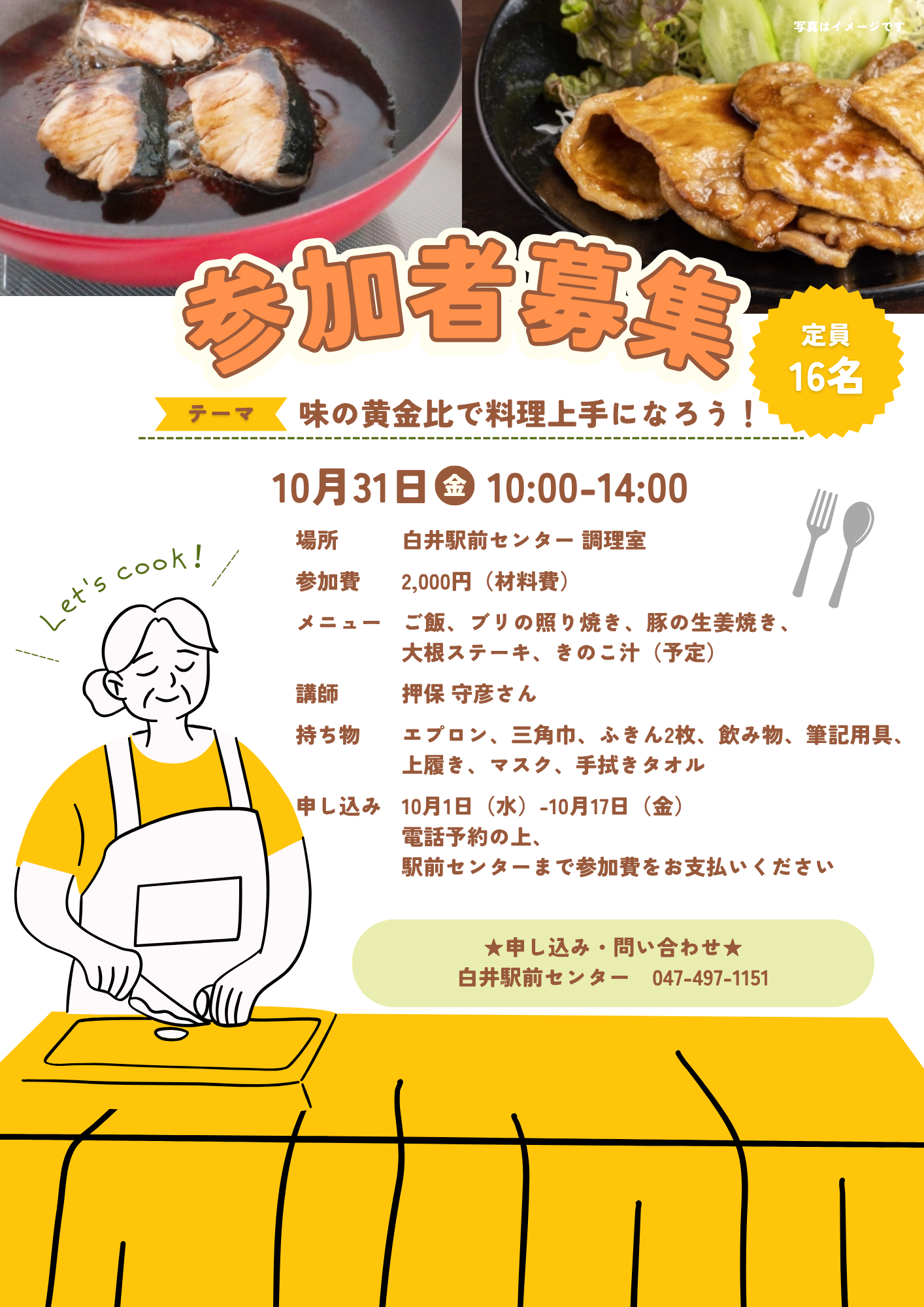 申込方法 白井駅前センターへお電話の上、参加費を窓口までお持ちください