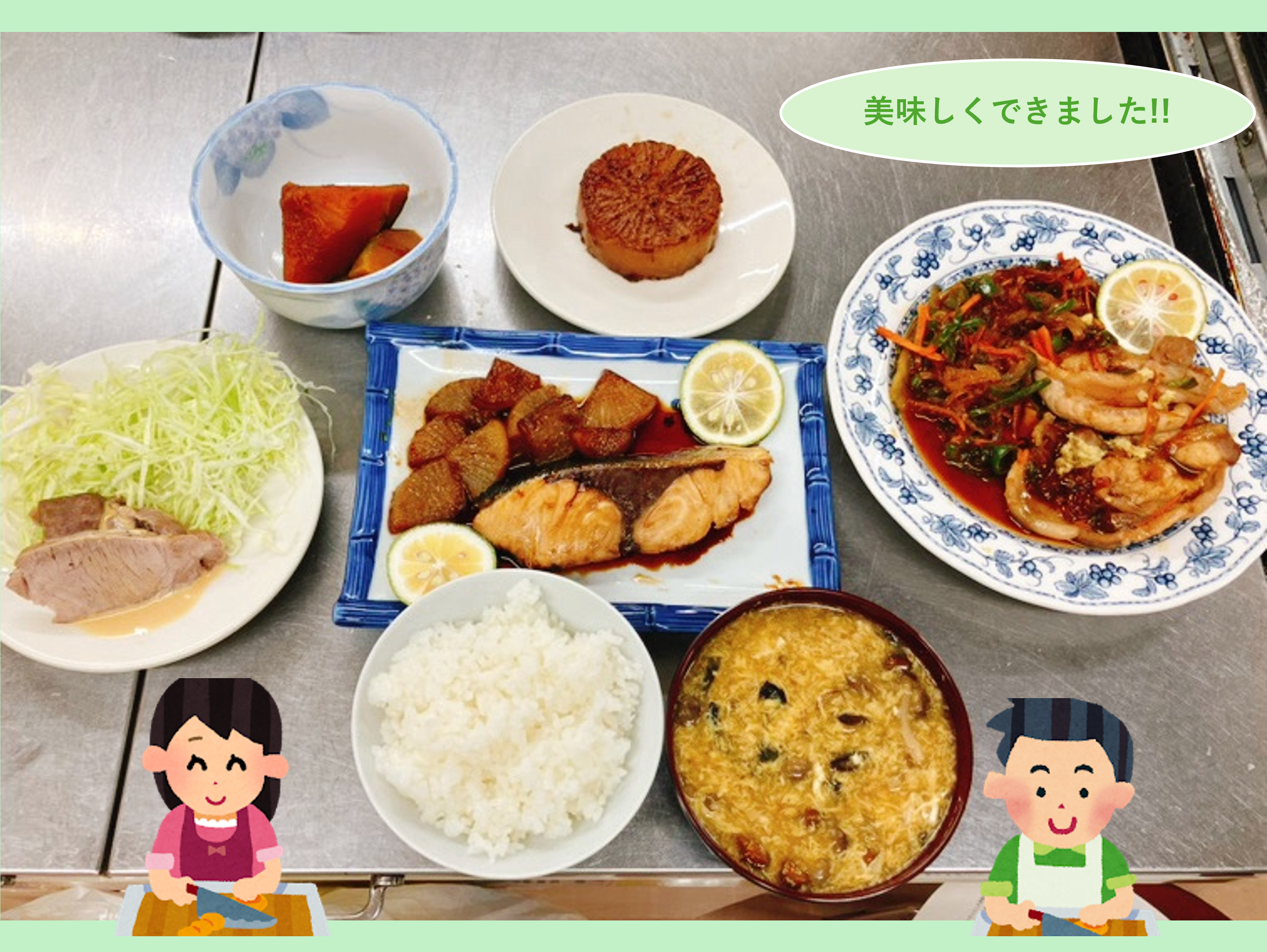 今回は、「味の黄金比で料理上手になろう!」をテーマに、ご覧のお料理を作っていただきました。